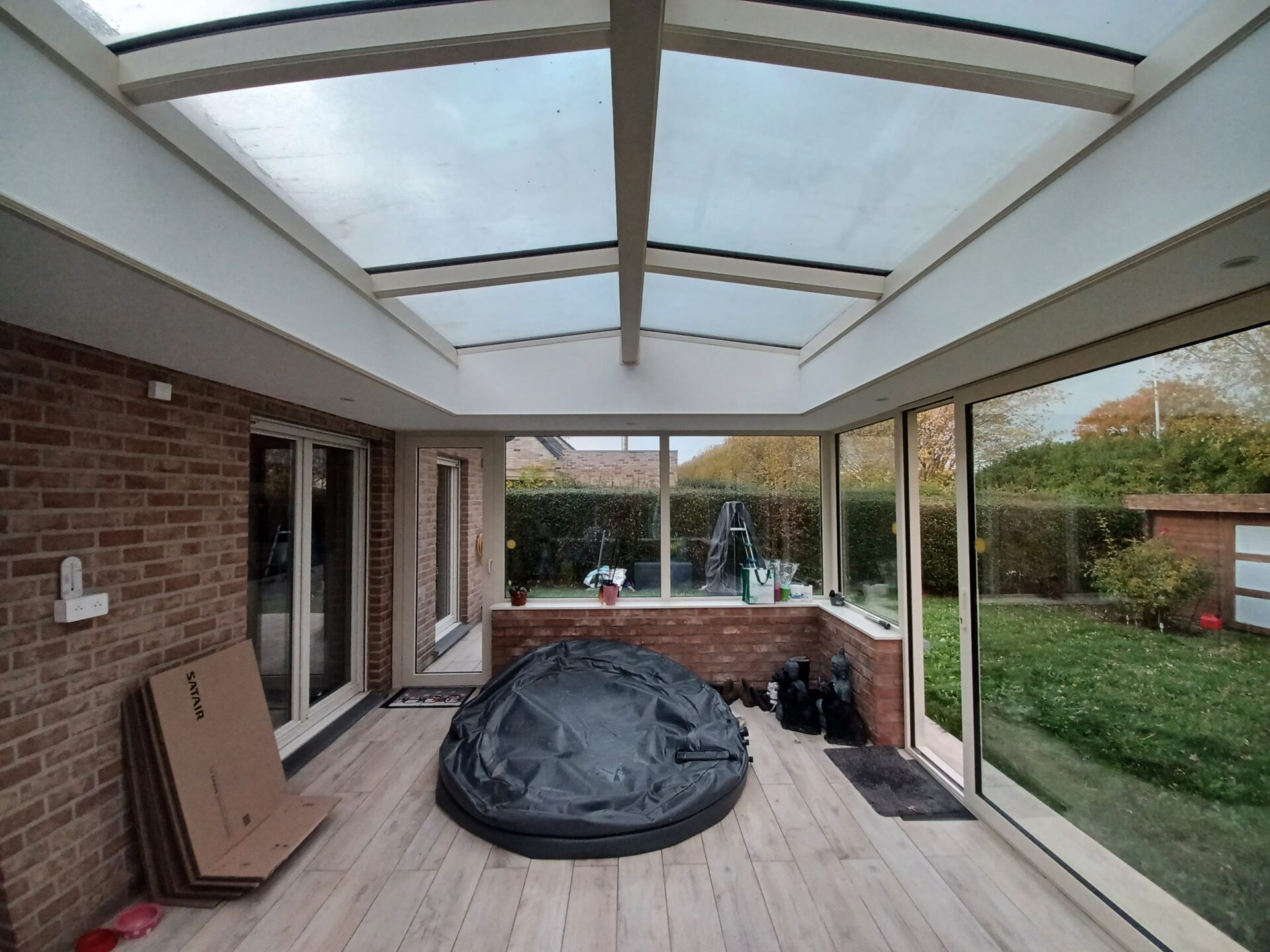 -Extérieur : jardin (large ouverture vers le ciel), terrasse, parking.