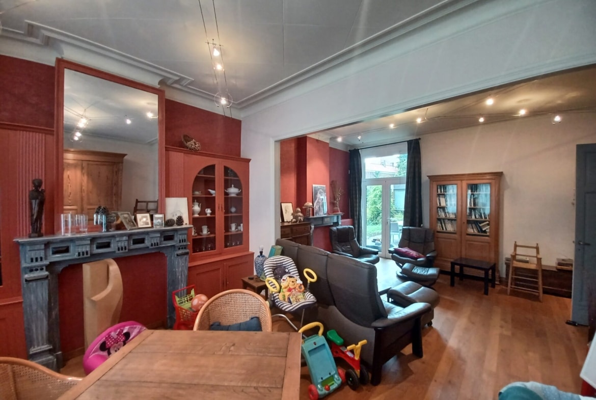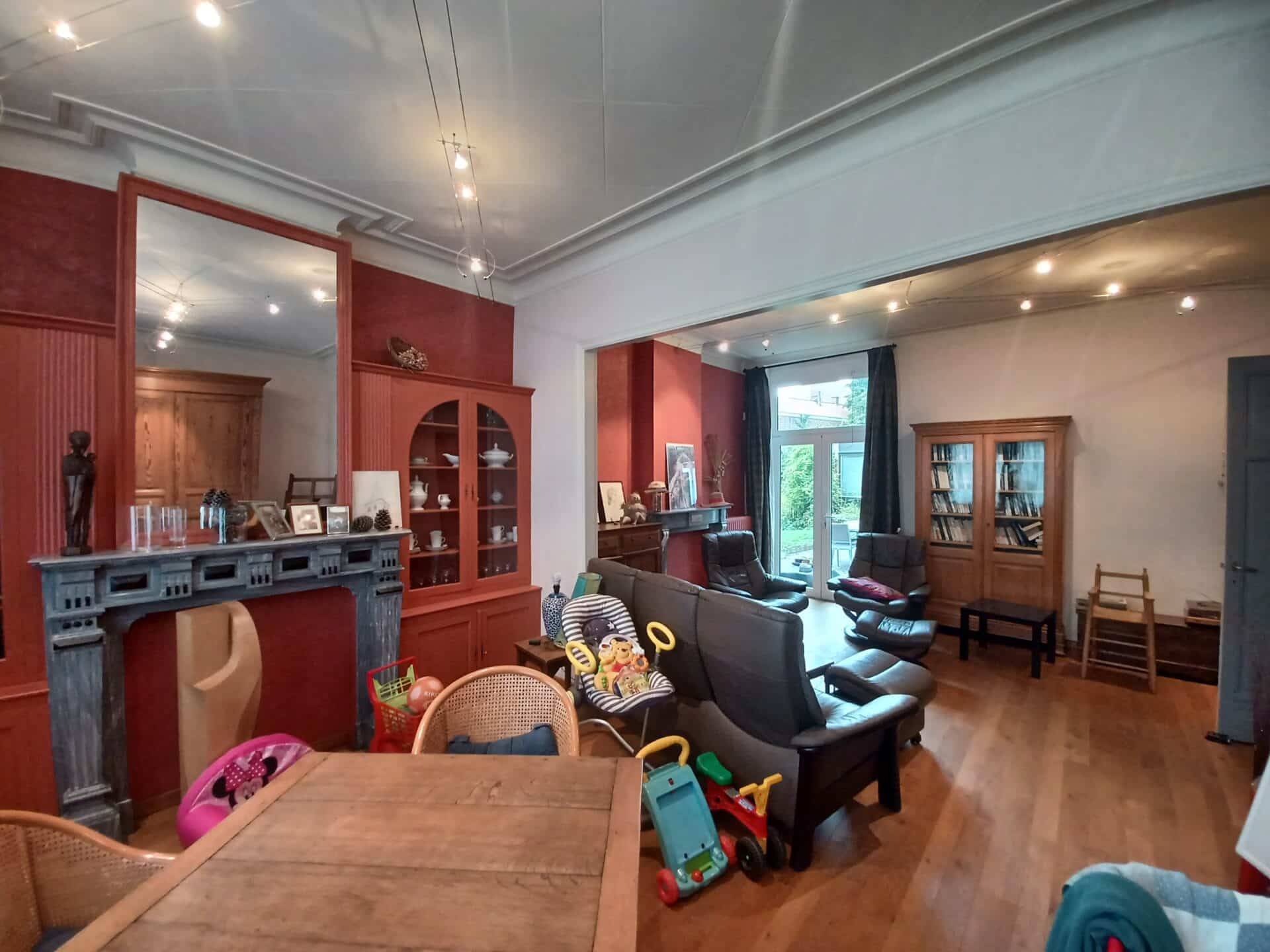 -Rez-de-chaussée : hall d’entrée, salon (cheminée), salle à manger, cuisine équipée avec vue jardin, wc avec lave-mains, partie professionnelle (comprenant bureau, salle d’attente, porte accoustique, accès vers l’extérieur)