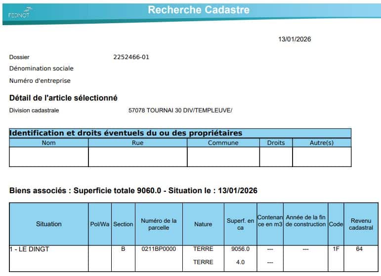 Cette parcelle, cadastrée section B numéro 0211BP0000, présente une contenance cadastrale de 90 ares 60 centiares (9.060m²) et un revenu cadastral non indexé de 64,00€.