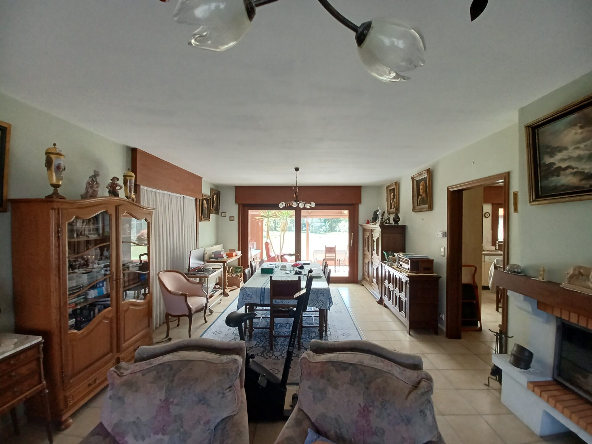 -Extérieur : grand jardin (avant/arrière), terrasse, parkings, passage latéral, portail motorisé.