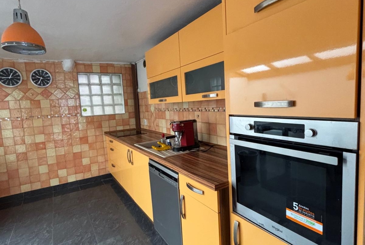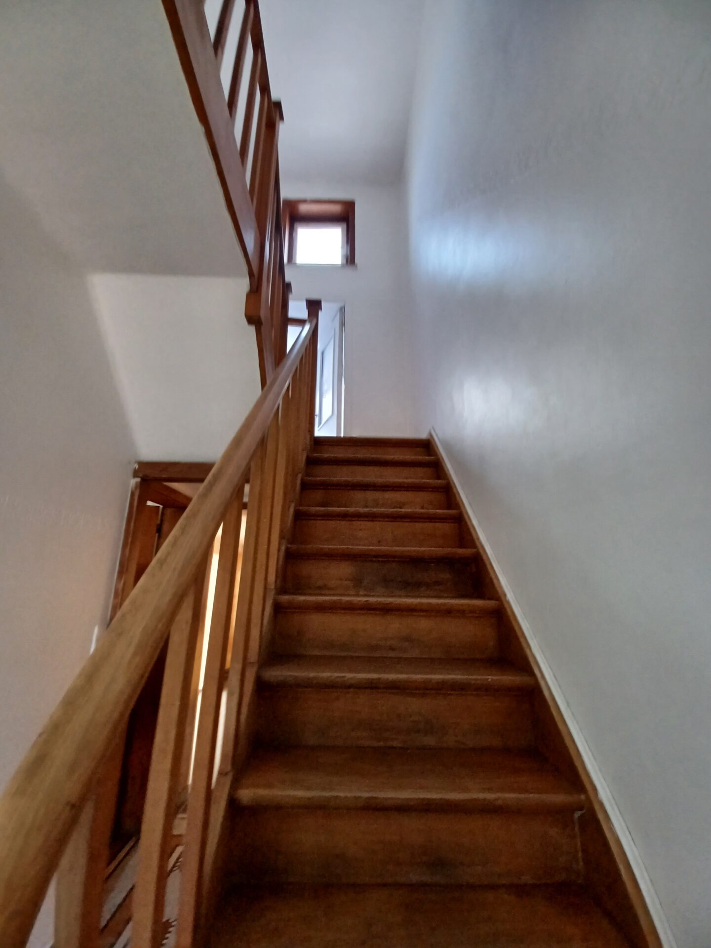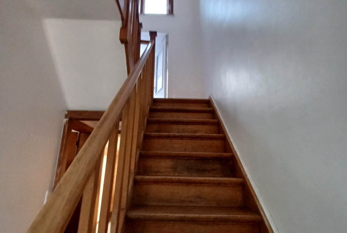 -Rez-de-chaussée : hall d’entrée avec escalier, rangement sous escalier, salon lumineux, salle à manger, cuisine équipée avec lanterneau, garage avec porte motorisée et porte de sortie vers la Rue Traversière